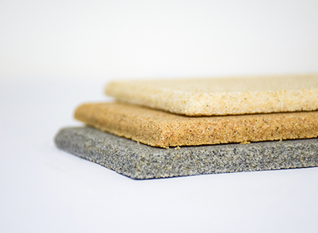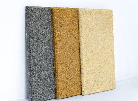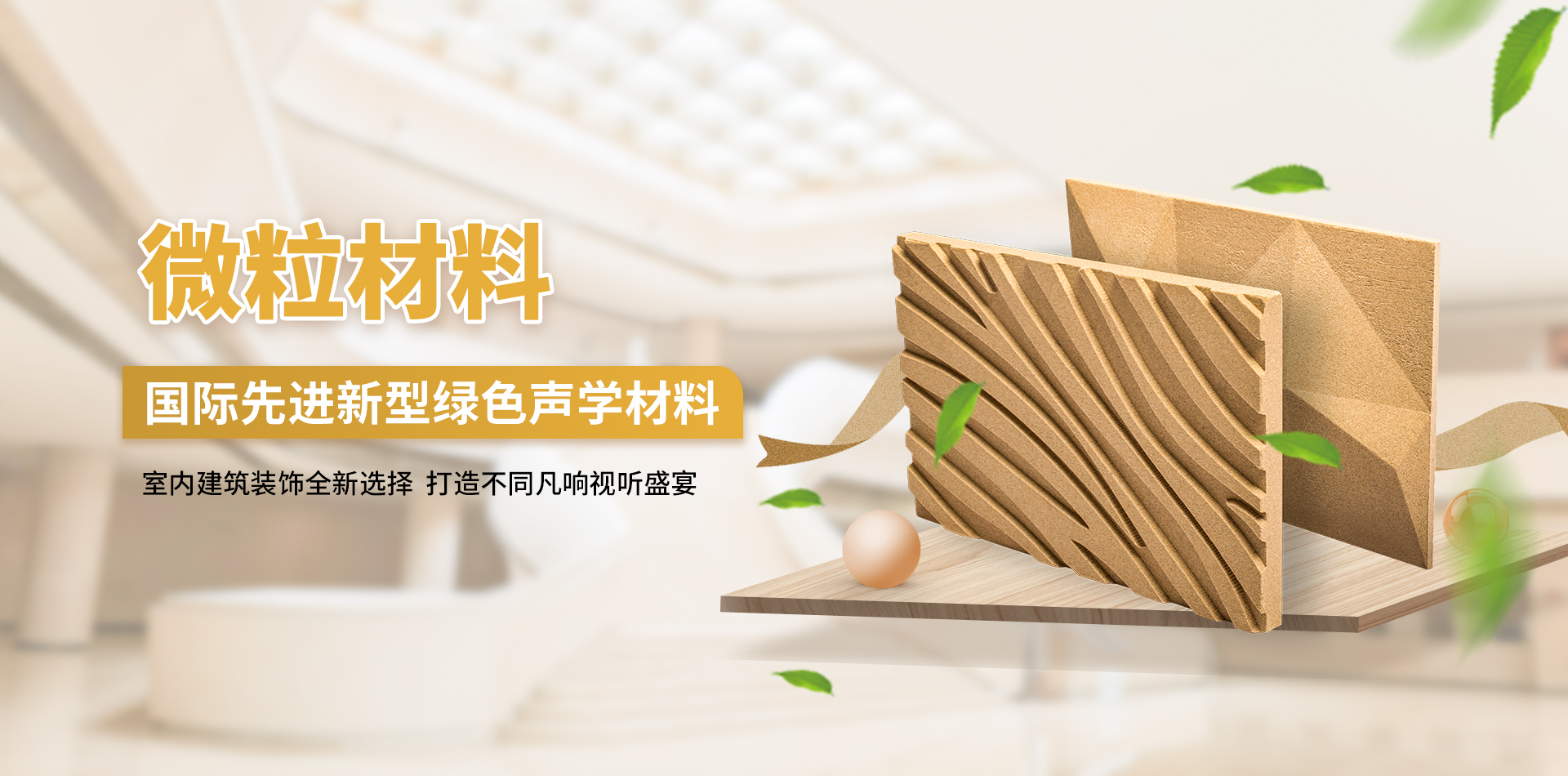 微粒材料是一種新型綠色裝飾材料,具備優(yōu)異的聲學性和物理性能。該材料是以天然砂?;蚪洯h(huán)保處理的固廢顆粒為骨料,以環(huán)保膠凝劑,通過壓振工藝,生產的具有大量相互連通的微小空隙的多孔材料。